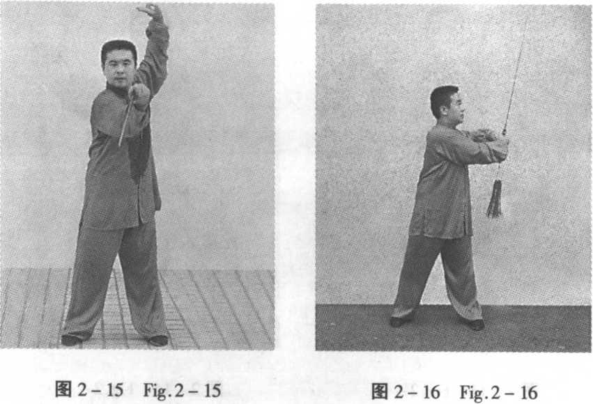 2.2.2 撩剑(见图 2- 15~2-20)。 Cut upward with sword (Fig.2-15^2-20).