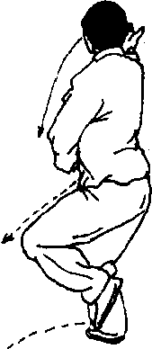 图1—151图1—151①右脚前落,脚尖外 撇,重心前移,上体右转; 右臂内旋,右掌翻转下捋, 左臂外旋,左掌向上、向右 划弧;目视前方(图1— 151) o