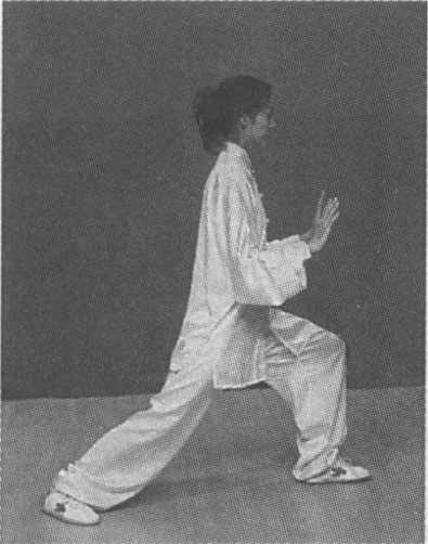 要点:裆劲下沉,右脚蹬地,两掌随重心前移,浅弧形 推出。