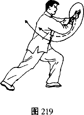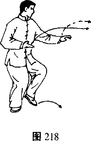 动作同“右捋挤势”中的“(六)弓步前挤”, 唯左右相反(图219) o