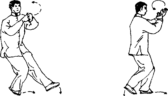 动作与“玉女穿梭”中的“(五)收脚下捋”相 同,唯左右相反(图241建