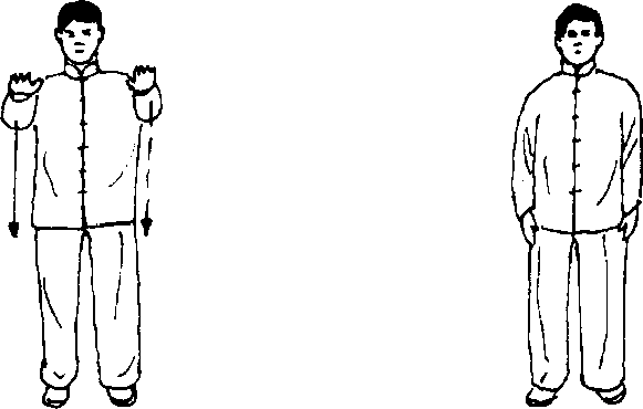 “左、右玉女穿梭”反复连续做8次后,再做 “两臂前举”和“两手按落”进行收势。