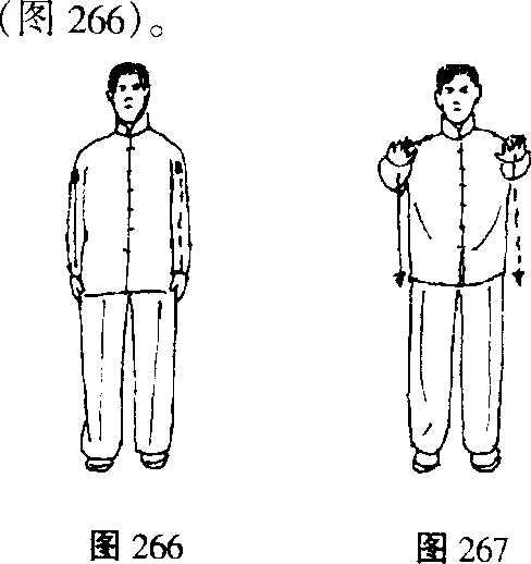(一)开步直立”动作同“搂膝拗步?”中的“(二)两臂前举图268动作同“搂膝拗步”中的“(二) (图 267)。两臂前举”