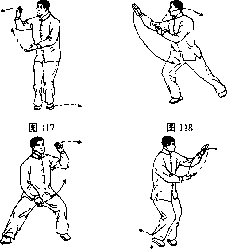 技击法:做“云手”时,想象彼以手击来,我 以一手腕棚接,随翻转手腕按采其腕,用另一手击 ? 106 ?