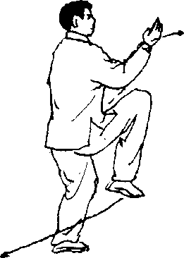 技击法:做“金鸡独立”时,想象彼以手抓我 腕,我外扳去,并以膝顶击彼裆部口