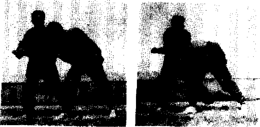 (一)双臂摆挡贯击甲方用“右冲拳”攻击乙方胸部,乙方用双臂由左向右摆 挡(图3—199),并用左手按压其右臂,用右拳贯击甲方左耳(图 1 200), 3 199 图 200(二)架抛拳甲方用右冲拳攻击乙方面部,乙方用右臂向上架挡,同时 身体右转,发“左抛拳”抛击甲方胸部(左拳像箭出弦一样射向甲方乂(图3—201)