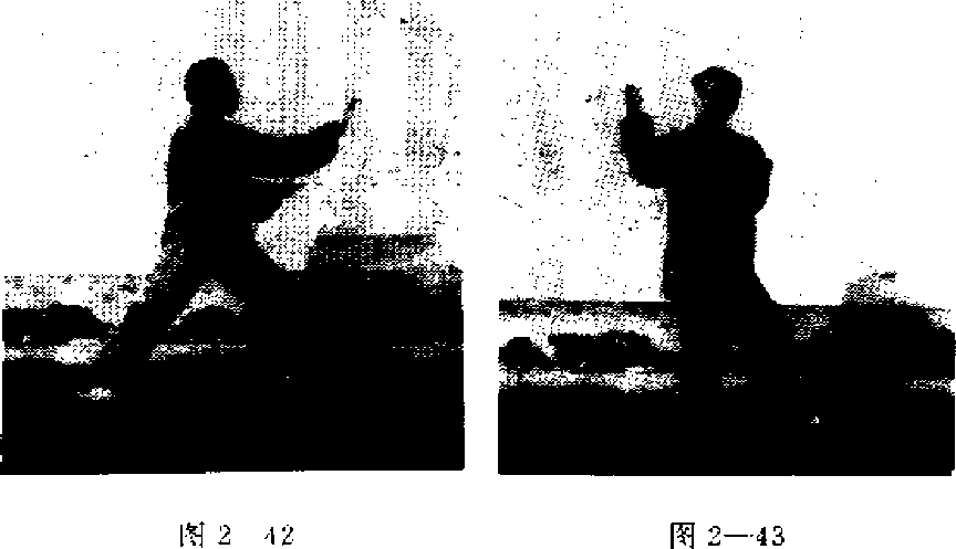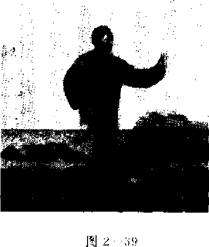 肩同宽的距离,立掌坐腕,掌心向前松垧松胯,沉肩恥肘,上 体正直.呼吸自然,目平视。(图2—46)