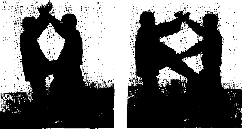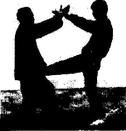 (一)上防拳下防腿击而迎击甲方用“左冲拳”、“右弹腿”分别攻击乙方面部和腹部,乙 方用右手由内向外上方拨挡来拳,同时用左手由内向外拨挡 宋腿(同3 __12);即用右手惟市甲方面部或扇击屮方丨: (图 3.. 13、14)」图:—12甲方用“双冲秦”攻击乙方胸部,乙方以左手由上向左下, 以右手由下向右上丨司时分控乘拳(图3—15),随即起车腿用 膝顶击甲方裆部(图3— ]6),或发“弹腿”弹击甲方裆部(图3一17) [1 ]5图3 —16 图丨_17