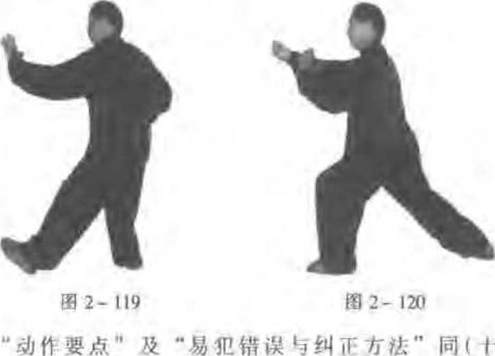 方;右拳向右划弧收至右腰蒯.拳心向丄;目视左掌 2119,
