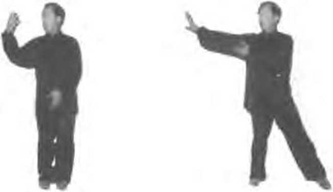 (4)收脚云手同(2),(图2141 142)214 图 2142.此完成了 5次云手中的两次.后边又是“横开步云