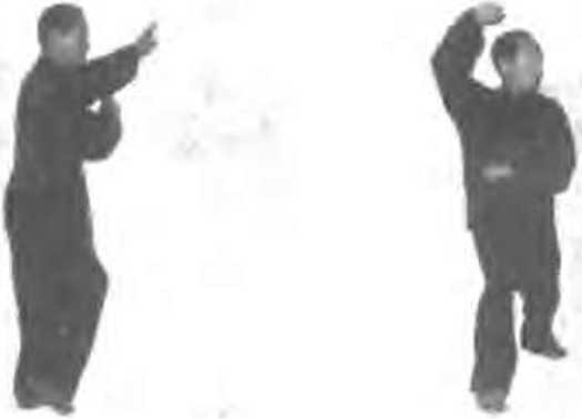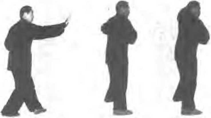 (1)交义步合手左腿铂屈.右脚间落于左腿成交 叉歩;同时左事由左方向怵前绕行至右木臀内侧.鞏心向 ".鞏指朝肫上方;目视右掌( 图2200