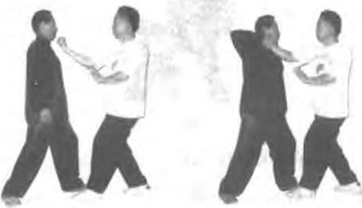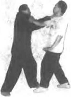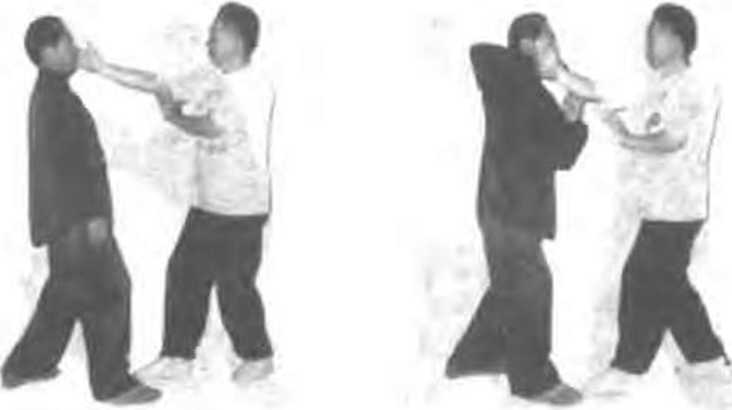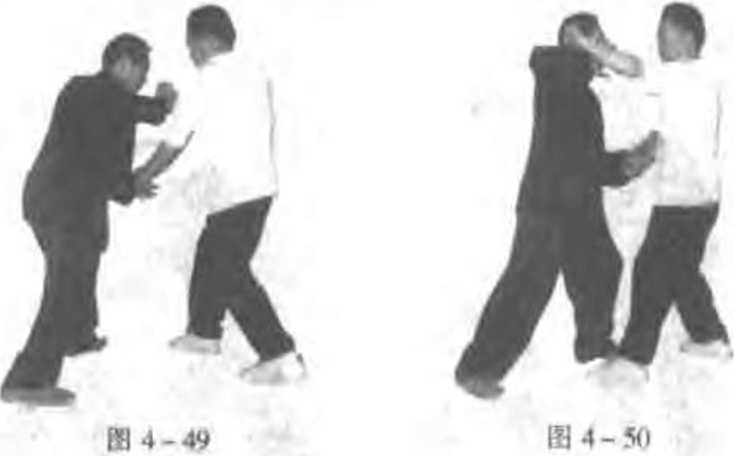 在举击乙小联1乙则用右掌抓捤住平右腕再向右云带使 来势狠的直力被化解 (图449、50)