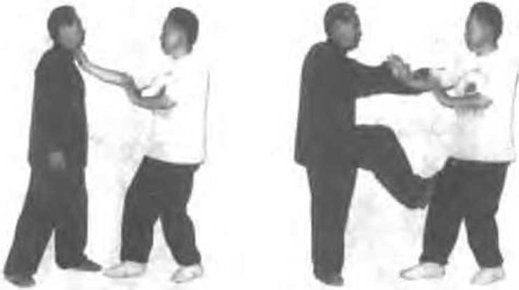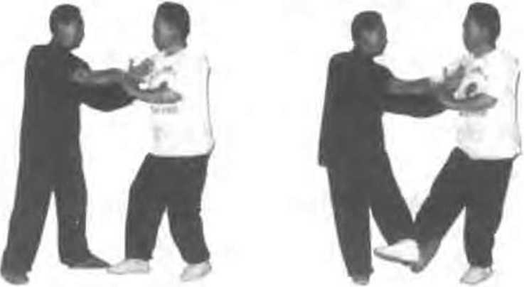 一 )上夹下勾甲右步出右拳向乙狗部击 札.乙出左脚勾住甲右脚;同时 心掳住平右手腕,左手则穿 油作甲仨腋下网合力失击前 送将甲发出去,(图47072田47 8 472(二)拿切截腿还击甲上右步,出右手欲抝乙喉邢.乙迅速右手拿切中心 ,间时出左脚用力蹬踹甲右腿:)(图473. 74)