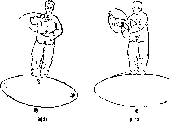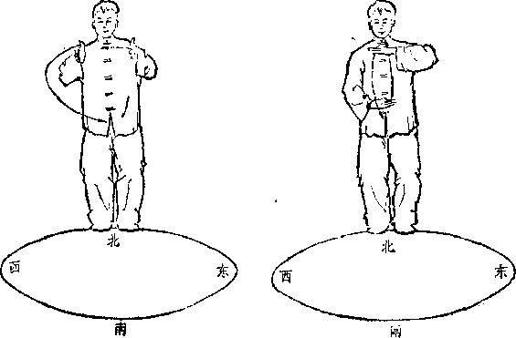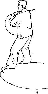 动挥要求着拳经要求,扣步要小,左脚尖部内沿距右脚尖 约五指之距离*双脚抓地,两胯裹劲,腰要叠,要含劲P
