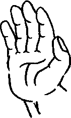 钩手是将四指的指尖和姆指合拢像抓住什么似的,手腕弯曲而手 指朝下。