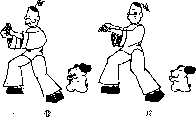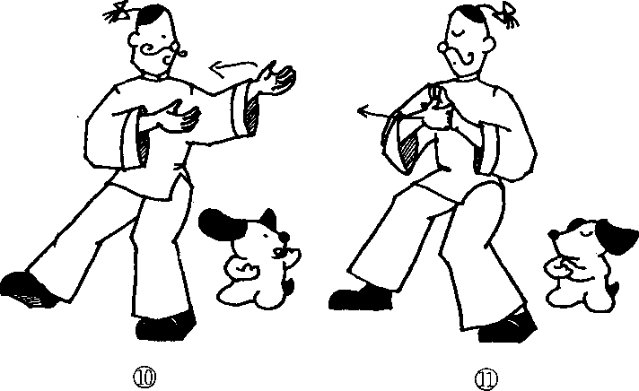 ⑨左手如抚摸一小球,腰向左转;⑩左手向后弓I,同时,右脚尖内收;右手放在胸前;?上身向右转,左手贴放于右手腕,右脚尖配合上身的动作回复到 正面;?身体重心移至右脚,手交叉向前推出;?将左手贴在右手上推出,再左右稍稍分开(两手心朝下);?????????身体重心移至右脚,将两手收回胸前;?两手收回至腰前准备推出,同时,右脚尖翘起;??身体重心移至右脚,两手向前推出。声羲蚤?不仅是手动,而且要以腰为轴心转动。