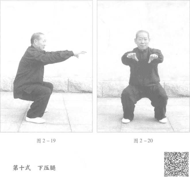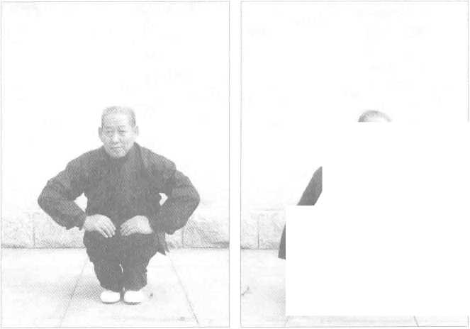 起蹲囷2-17 图 2-18对腰、膝部、脚踩部起到防止衰老的作用。是八卦掌下盘平膝胯的 基础练习