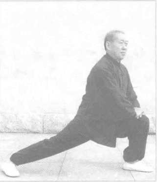全身放松,中正。舌顶上 腭,气沉丹田,用柔劲、沉坠 劲,避免僵劲、刚劲。前腿弯曲