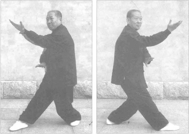 劲力双肘相对前后外翻,腰膝身肩劲。图5-6 图5-7