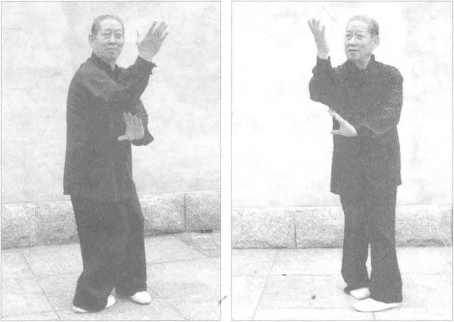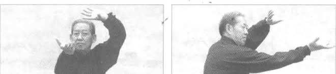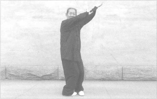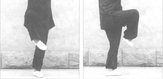 全身松坠。提膝,脚尖内扣。(图5-48、图5-49)