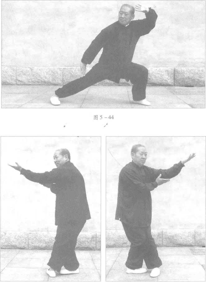 图 5-42 图 5-43劲力塌腰、溜臀,顶膝、松肩、坠肘,砍削劲