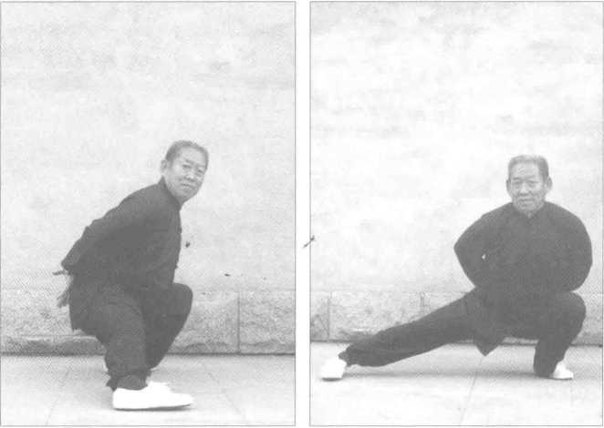 劲力塌腰、溜臀,顶膝、松肩、坠肘,砍削劲。