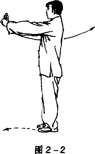 成立正姿势,左手握拳,右手掌按于左拳虎口处,由胸前平 推伸直。双目平视(图2-1、图2 - 2)。
