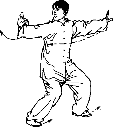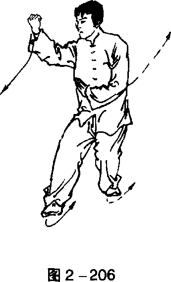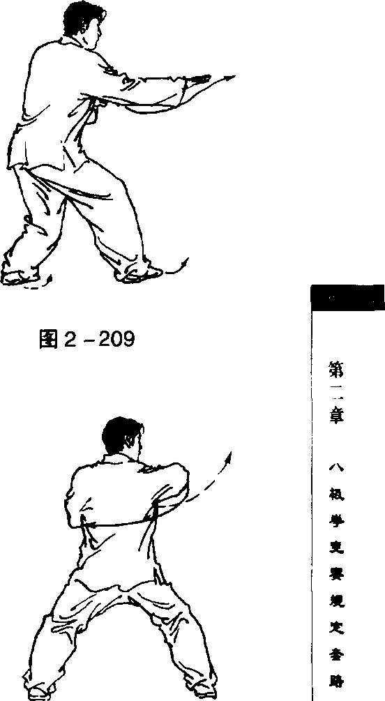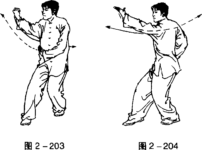 虚步;右臂反挎,左手配合立置于右腋侧。目视左手(图2 - 203 )0