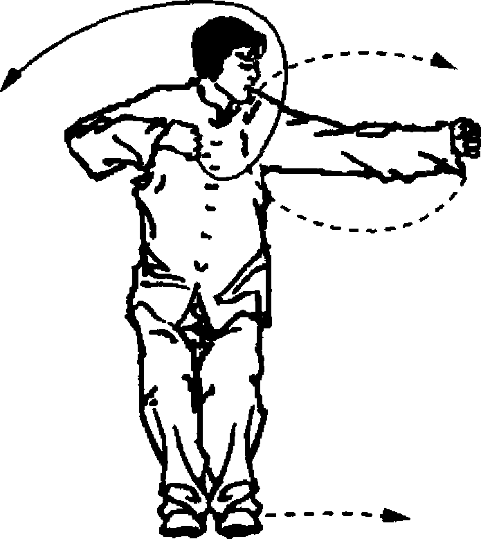 下、向里、向上、经胸前向前撑打,拳面向前,拳心向下,右 拳由胸前向上、向后摆至体后斜下方,拳眼向下,拳面朝后。