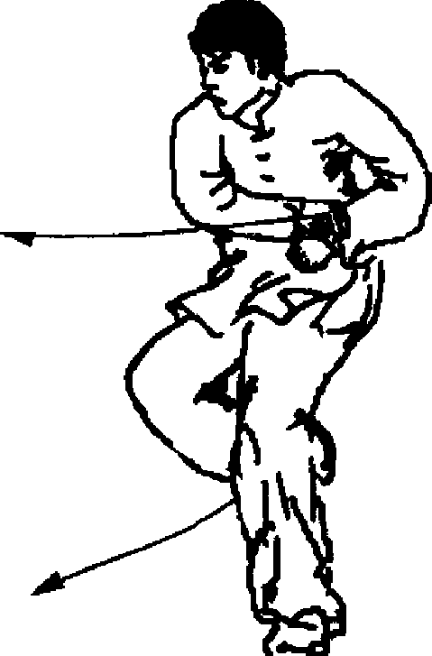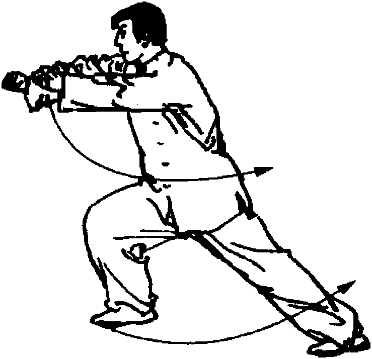 动双臂,弓步冲拳、马步侧打 要拧成一劲。