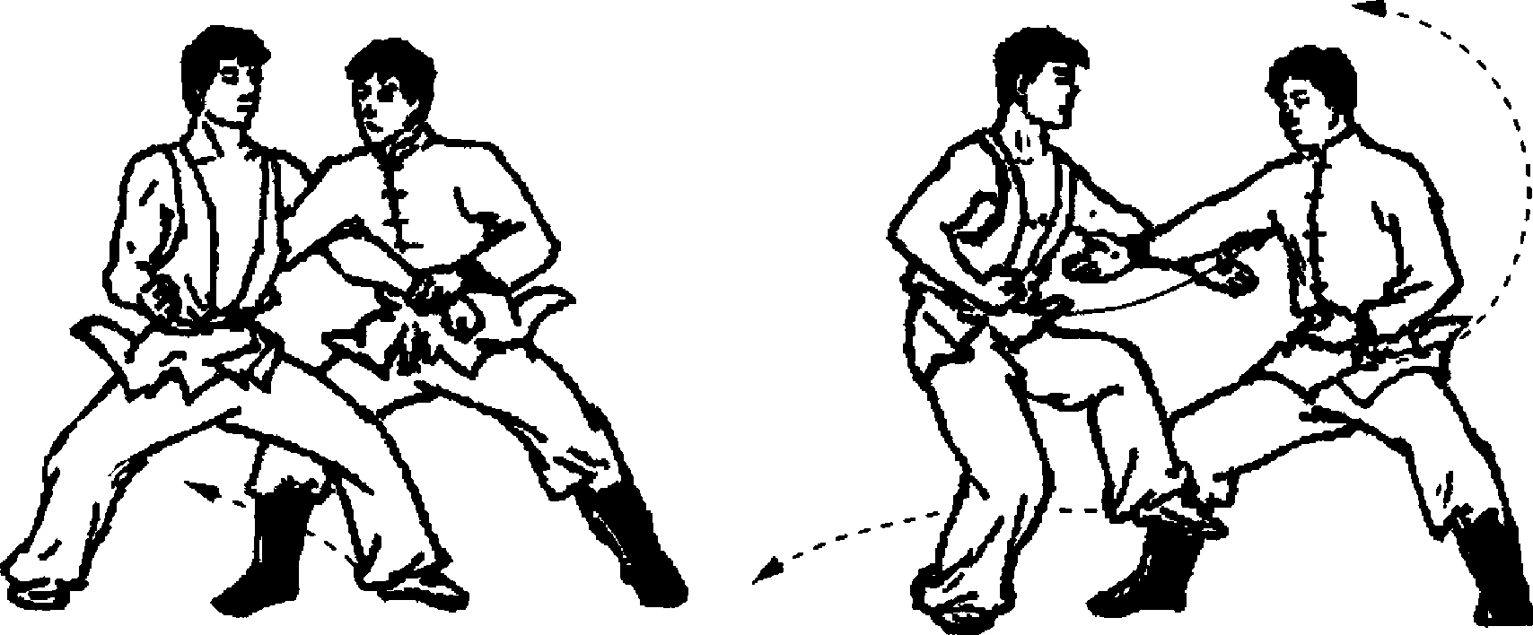 要点:甲做小缠要紧扣乙右手掌,同时做“提点卷压”的 动作。乙挂踏须手脚协调,动作干脆,发力短促。