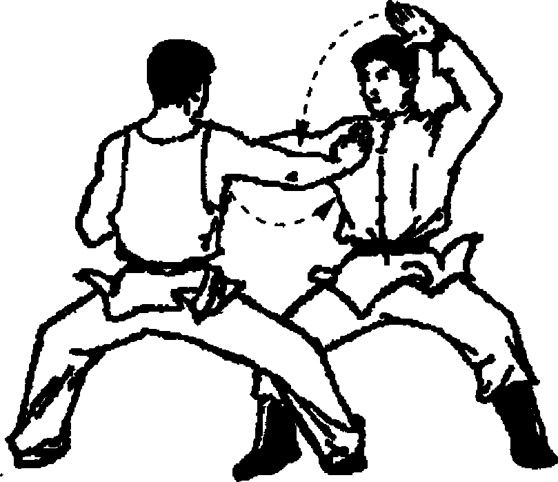 时,右掌向甲右胸推击,右掌变拳抱腰。目视对方。(图『82)