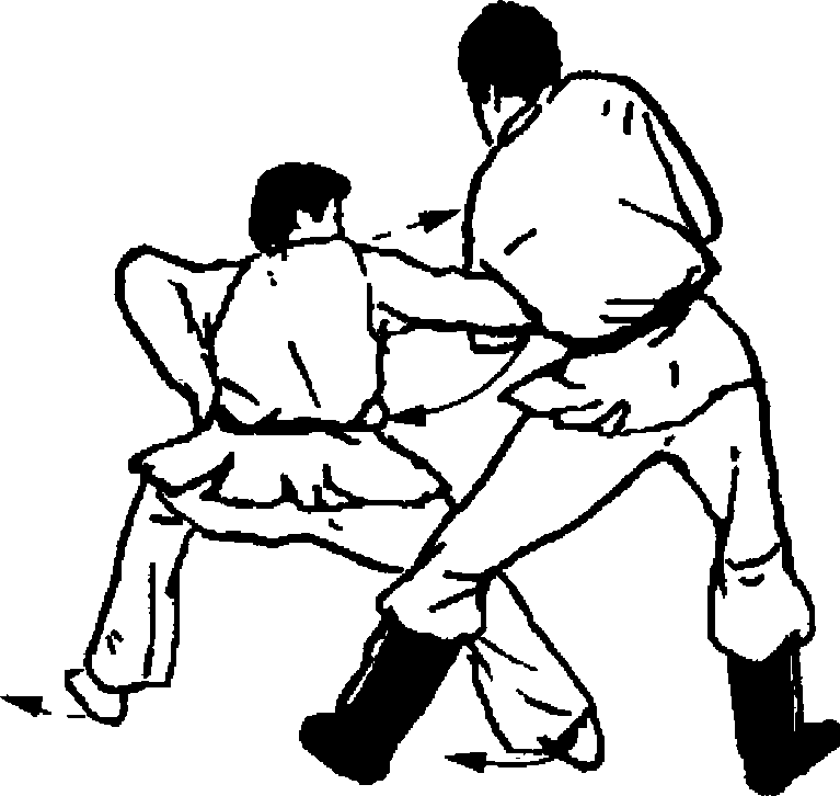 后,右臂由后经上向前以肘压乙左臂后,下插抱住乙腰部° (图 6-80)