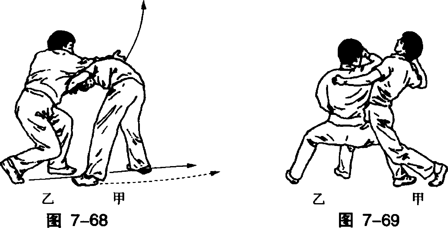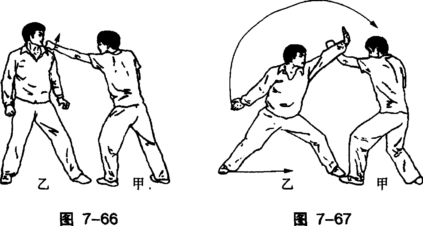 乙用左手接握住甲左拳腕。(图7-67)
