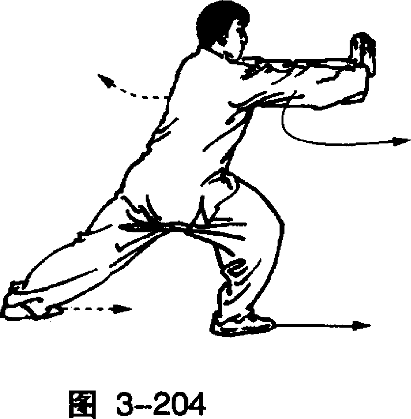 要点:撤成马步与挂 拳要同时,双掌齐推要巧 用腰劲,要顺肩。