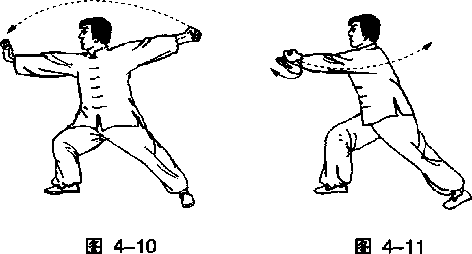 上体稍向右转,拳眼向上,拳面向后。目视右掌。(图4-10)