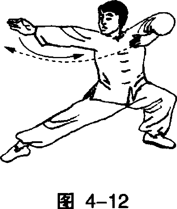 掌心向前下方,掌指向右侧方。 目视右掌方向。(图4-12)