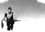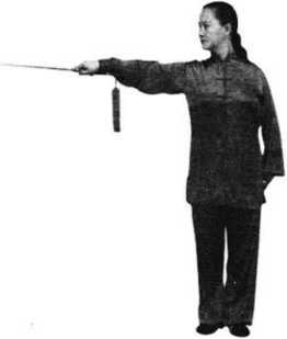 ③反握立剑:手握剑柄,拇指压于食指第二指节上,其余四指 并拢握紧剑柄,手心向后;剑刃向上下。(图2-4)