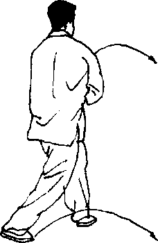【内意活动】 意想“气”向左脚底松沉,左胯根外旋
