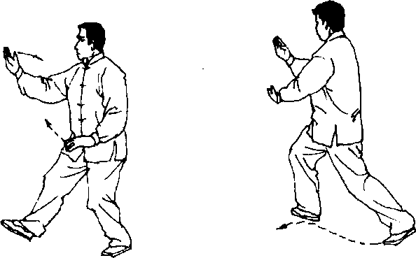 (1) 丁步抱球:同“L右野马分鬃”的“(1) 丁步抱 球”。(图 216、217、218)