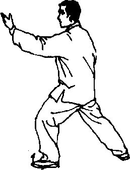 (2)弓步分靠:同“1.右野马分鬃”的“(2)弓步分 靠”。(图 219)