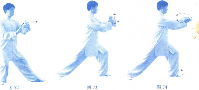 9 .弓步前挤:同4 解,只是左右相反。(图 72.73)