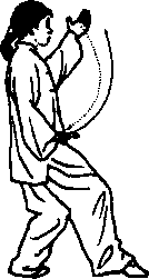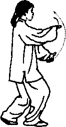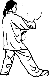步法:随体转,重心移于左腿,左脚踏实,右 脚跟随即离地。