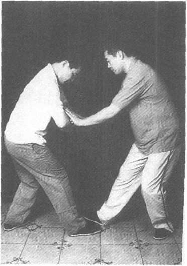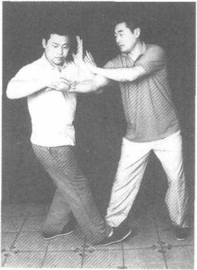 按:以手压之,凡抑、止、扶、控皆谓之按法。 常用的有正按、斜按两法。正按为按住彼臂向腰部推 按;防御须斜按,使彼力落空,乘机推按之。