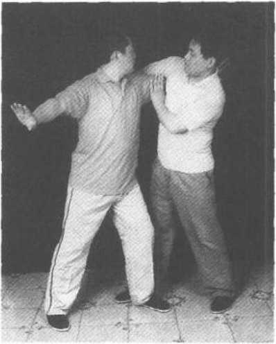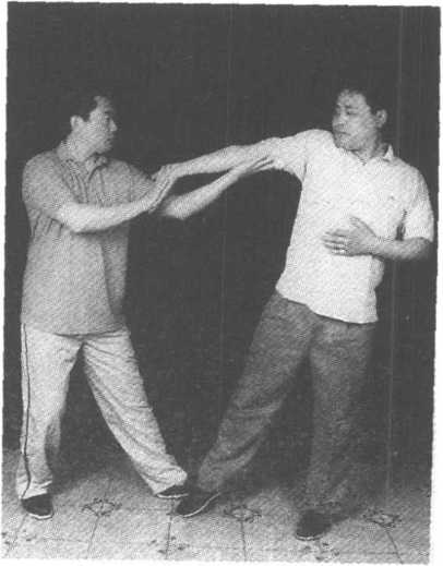 当乙从甲的左后方按住甲的臂膀或拧住甲的左臂 时,甲向后插左腿,同时左前臂螺旋从乙的右腋下穿 出,全身向右猛转180。以上,将乙摔出(图140)o图1405. 搬拦捶:当乙用右拳击甲的胸部或腹部时,甲上左步用左 手按住乙的右臂,右拳趁机击打乙的胸部(图141)06. 托枪打鸟:在搏斗中,甲右手抓住乙右手四指下撅,同时上 左步用左手托住乙右肘向上发力(图142) o.-. - - - —? - - ?- - -T- -. - -;;rw . .. . . -; . . .. . . 径?二_图141图142