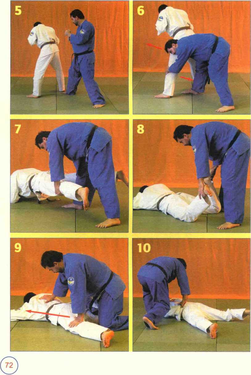 7-8 D用双手扫摔将A摔倒在地(见上页对应图片)。