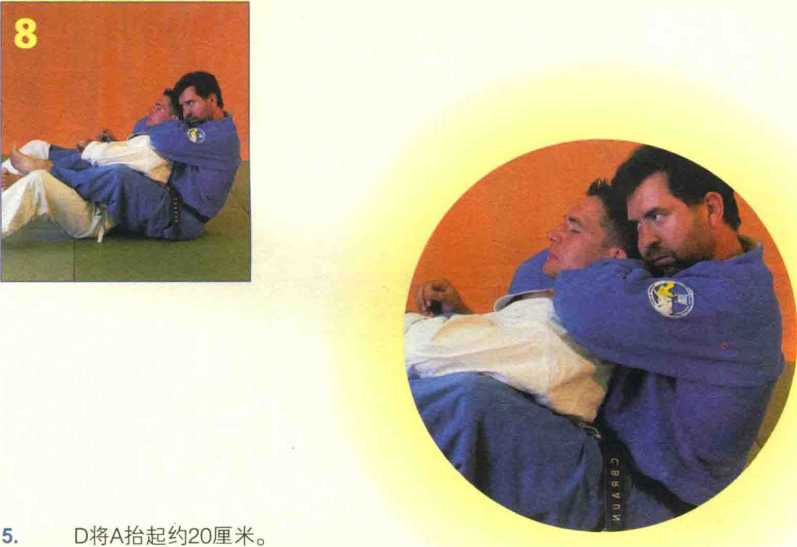 6. D将A略微放下,并用膝盖顶住其身体。