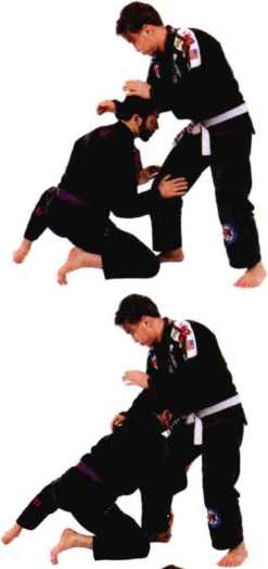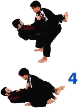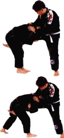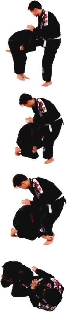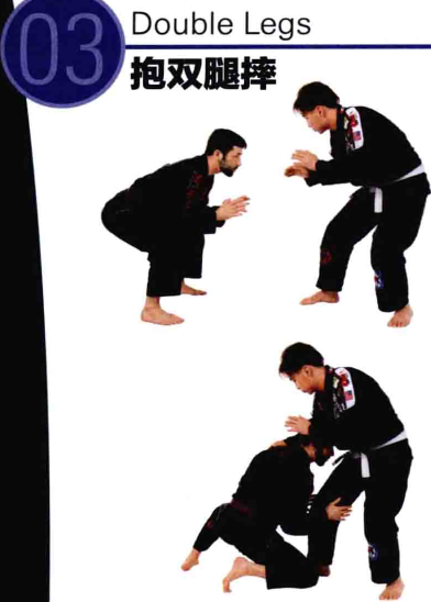 利用身体的重量将对手拉倒在地面上,进入一 个标准的封闭式防守位置。