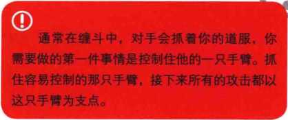 多人不控制对方的手臂,任由他的手臂 支撑身体,而想直接推倒对方,这是吃力不讨好 的。正确的做法是举胯的同时向自己身体内侧拉 动他的手臂,破坏其稳固性。