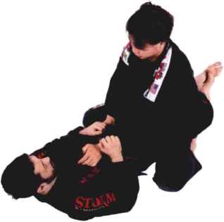 巴西柔术中,以这个位置开始的情况非常 常见。对于被压制的一方来说,永远不要背部平